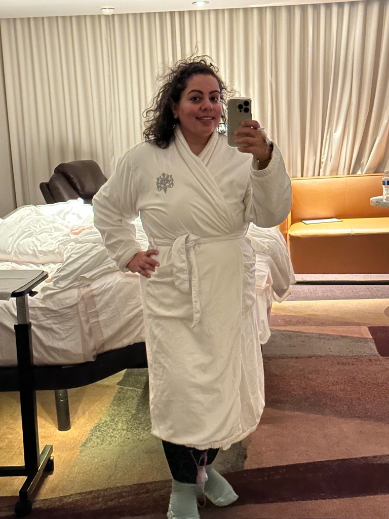 Day 2 started out with me waking up at 4 am after sleeping at 1 am. These meds have me idling high. After pacing the room for a few hours, I decided to have breakfast and a mini spa day. You know I love my skincare regimen. So, I spent some time rubbing in my various lotions and potions and wrapped myself in a fluffy robe to marinate while waiting to be discharged.