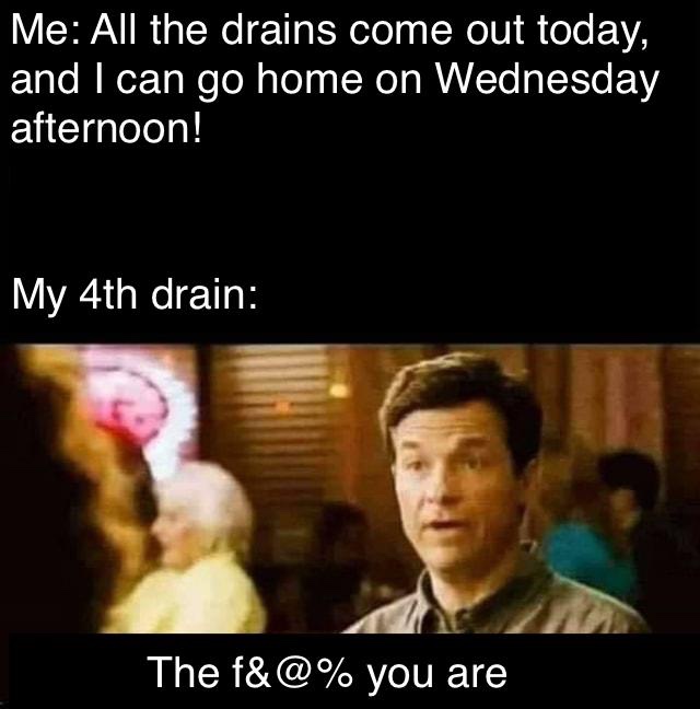 The day started out hopeful. The drains had slowed, and it looked like it would be time to remove them. The top two drains had closed up beautifully. I went in ready to have the bottom two removed and be sent on my way.